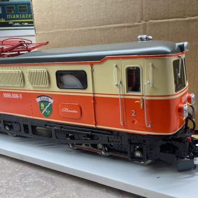 Durch das Fahren auf LGB Gleisen 1000mm im Original, ist das Drehgestell trotzdem Maßstabsgetreu, aber auf unsere Mariazeller Spur mit 760mm Gleis angepasst. Daher wirkt diese 1099 Lok sehr Originalgetreu. Die zwei 3achs Drehgestelle drehen sich in diesem schmalen Gerüst, daher ist kein R1 Radius befahrbar! Alle Teile sind aus hartem Messingguss, Hartgelötet und so unzerstörbar bei Entgleisungen.