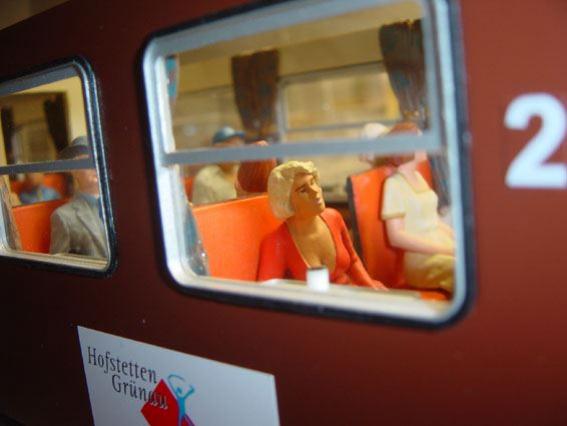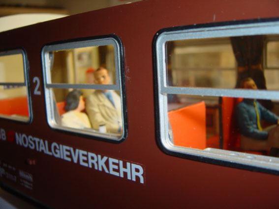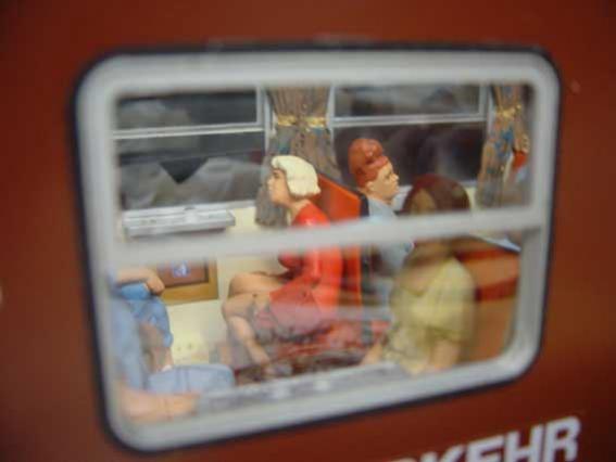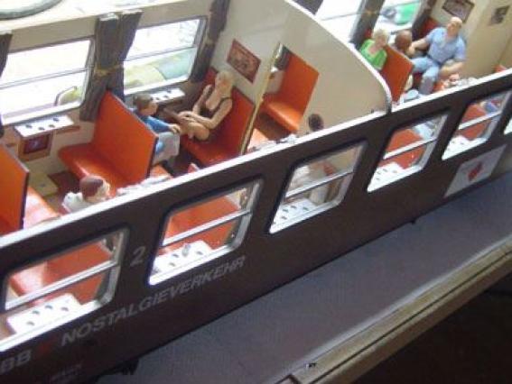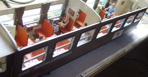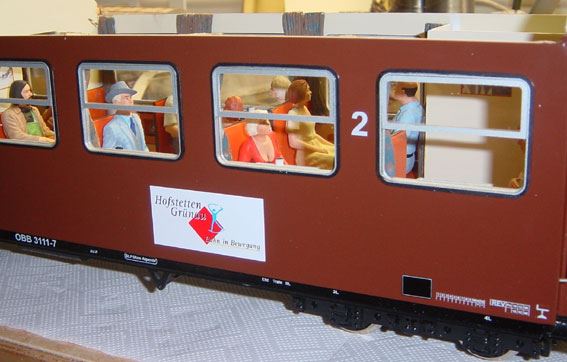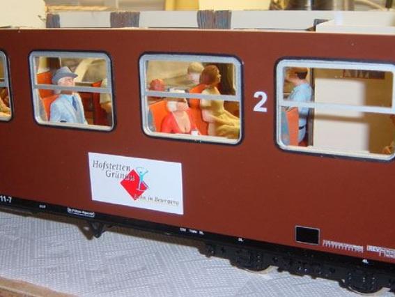 Ein von uns ausgestatteter Wagen (mit Inneneinrichtung, Vorhängen, Figuren etc.)