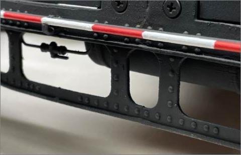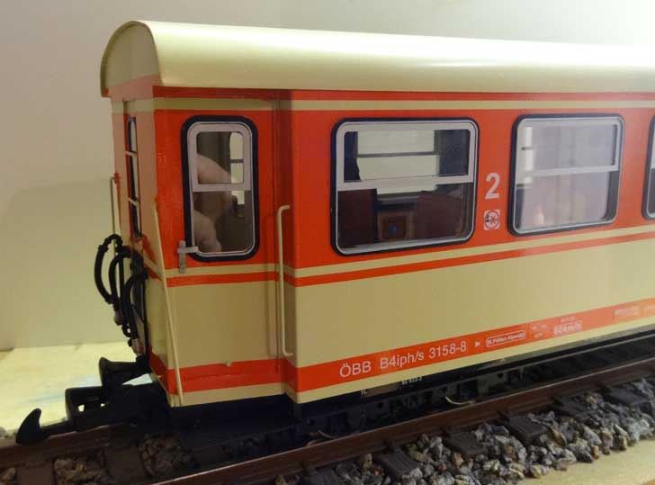 Das Hauptgehäuse aus getemperten Glasfaserverbund Werkstoff ist mit allen Nieten nachgebildet und die eingesetzten Fenster und Lüftergitter sind wie beim 4-achser sehr originalgetreu nachgebildet.